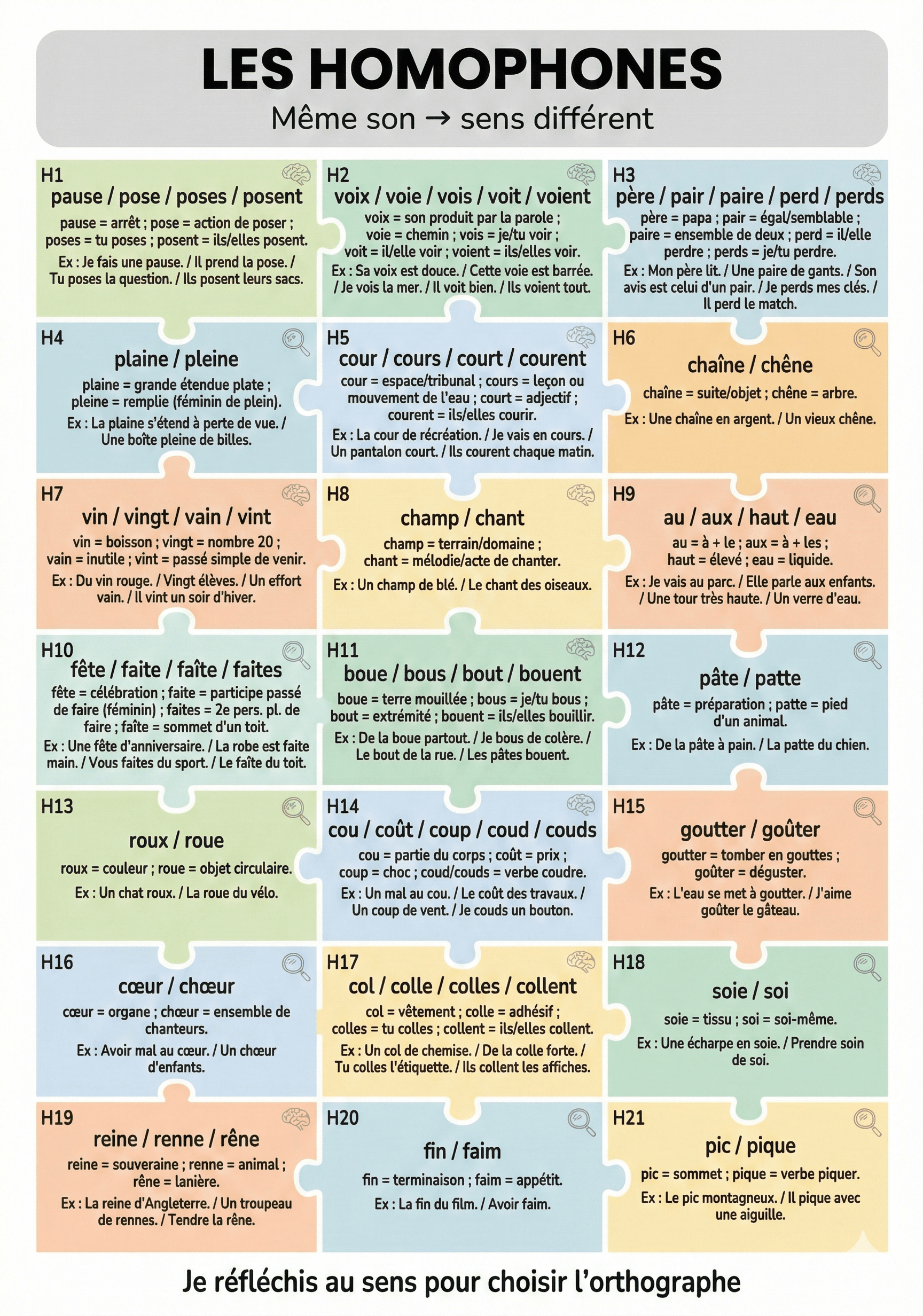 Les homophones - Liste 1