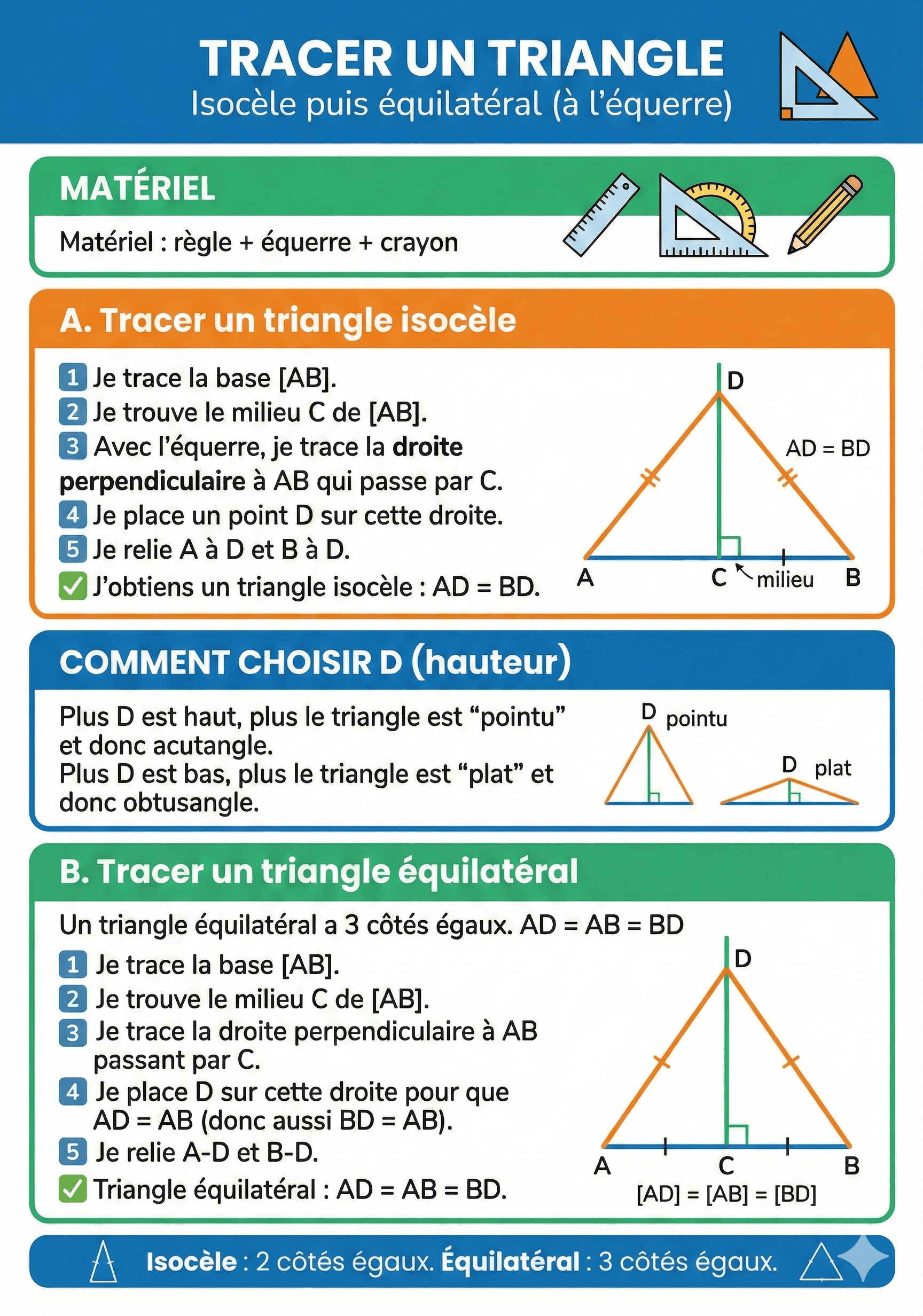 Tracer un triangle isocèle et équilatéral à l'équerre